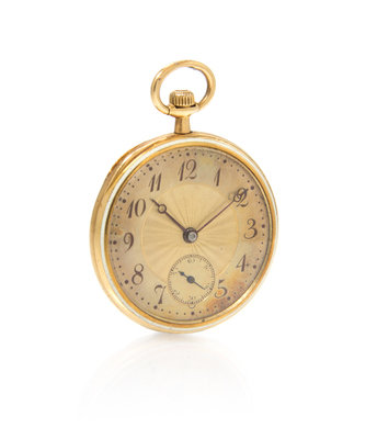 An Art Nouveau 18 Karat Yellow Gold and Polychrome Enamel Open Face Pendant Watch,