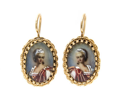 A Pair of Vintage 14 Karat Yellow Gold Portrait Miniature Earrings,