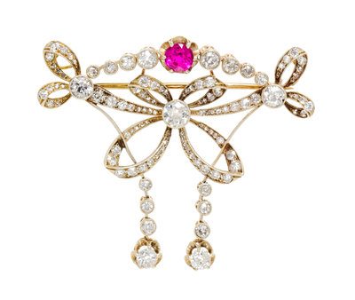 An Antique Gold, Diamond, and Synthetic Ruby Pendant/Brooch,