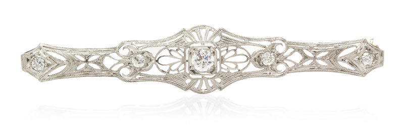 A Platinum, White Gold and Diamond Bar Brooch,