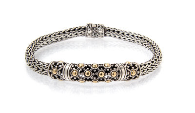 A Sterling Silver and 18 Karat Yellow Gold Bracelet, John Hardy,