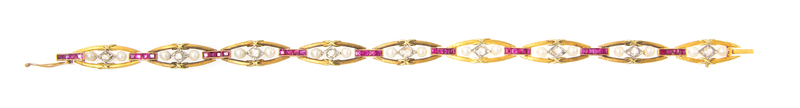 A Victorian Yellow Gold, Silver, Ruby, Diamond, and Pearl Bracelet,