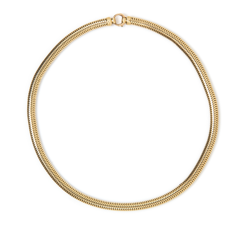 A 10 Karat Yellow Gold Flat Snake Chain Necklace, Forstner.