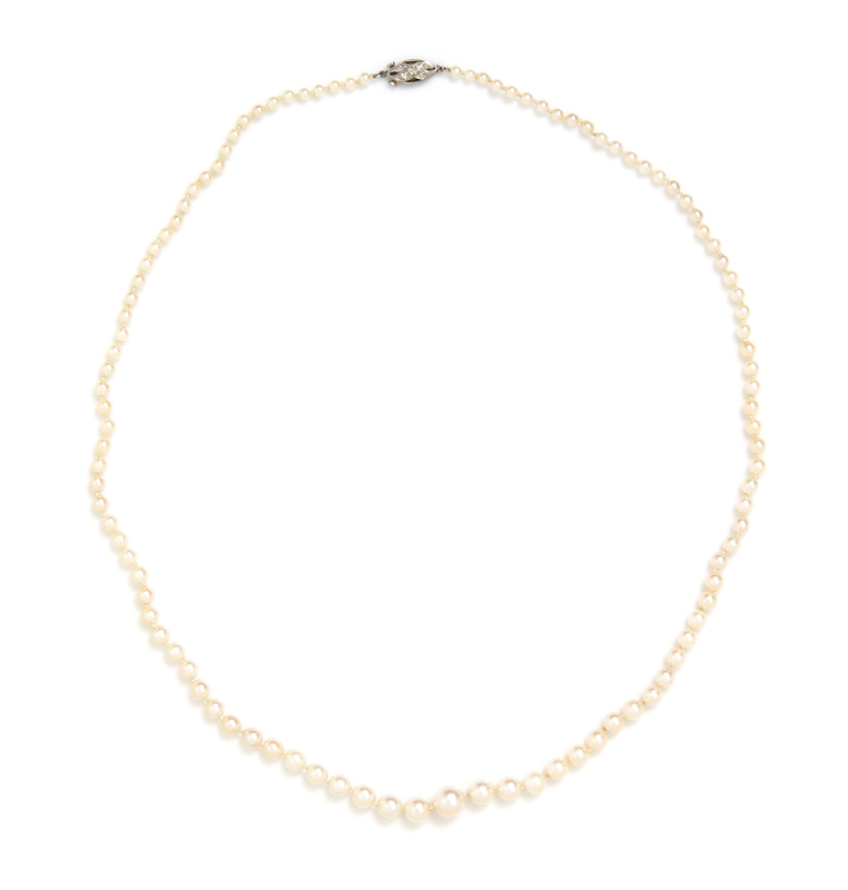 A Platinum, Diamond and Graduated Cultured Pearl Necklace,