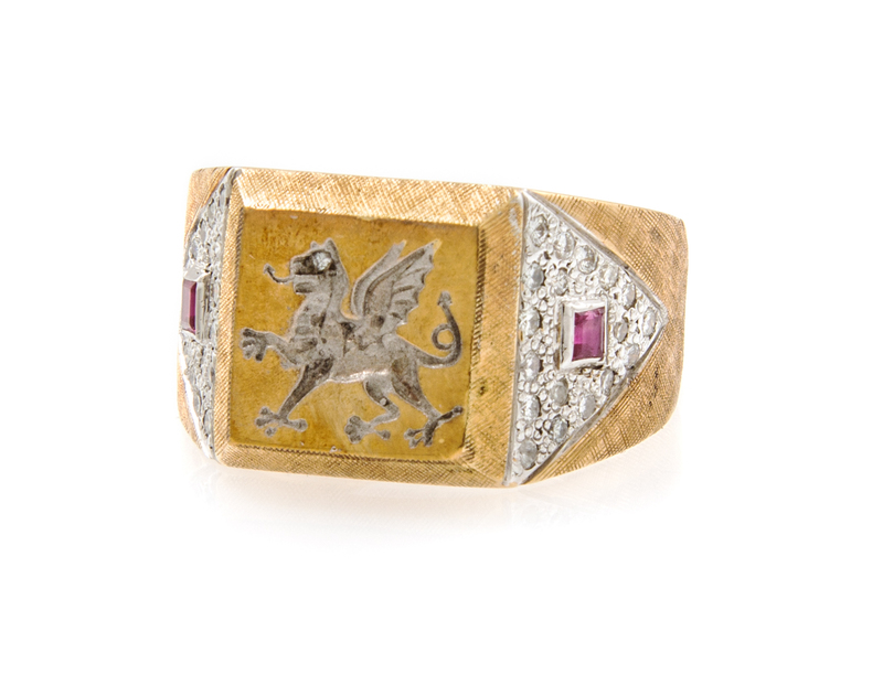 A 14 Karat Gold, Diamond and Ruby Dragon Intaglio Ring,