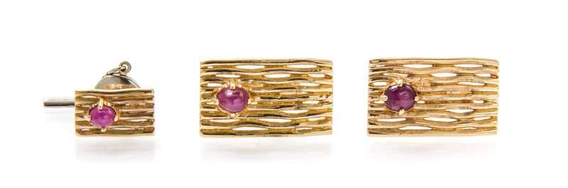 A 14 Karat Yellow Gold and Star Ruby Dress Set,