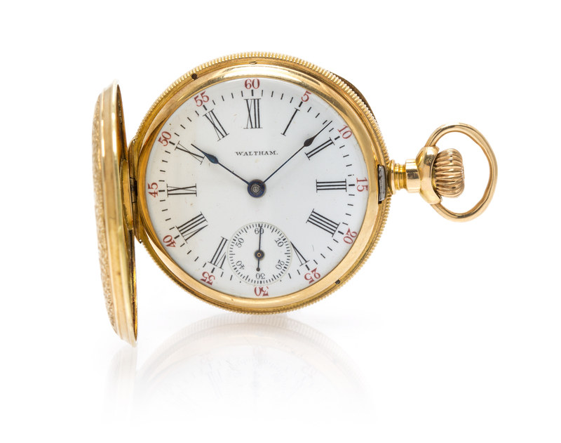 A 14 Karat Yellow Gold Hunter Case Pocket Watch, Waltham,