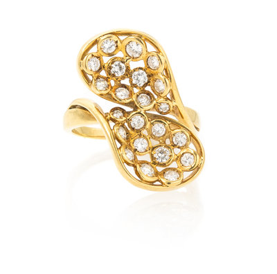 in a bypass style, containing 22 round brilliant cut diamonds weighing approximately 1.10 carats total.