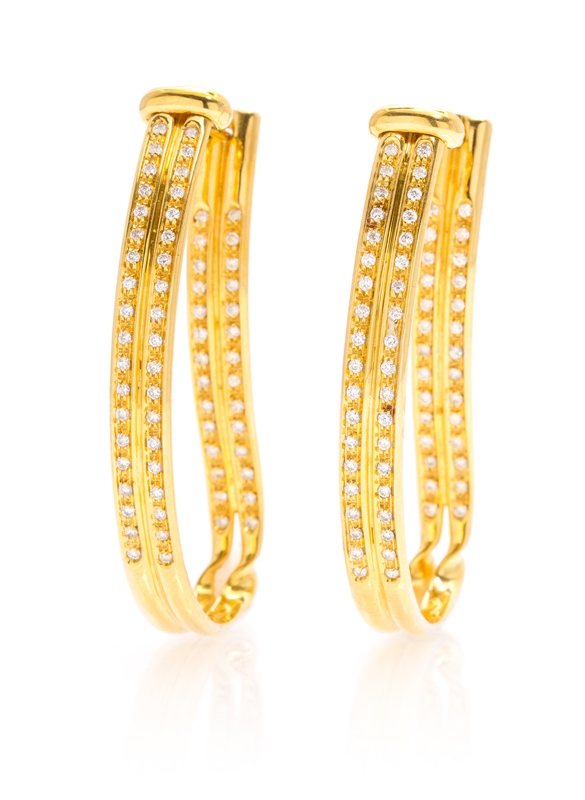 A Pair of 18 Karat Yellow Gold and Diamond Hoop Earrings,