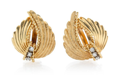A Vintage Pair of 14 Karat Yellow and Gold Diamond Earclips,