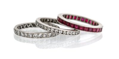 A Collection of Platinum, Diamond and Ruby Eternity Bands,