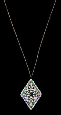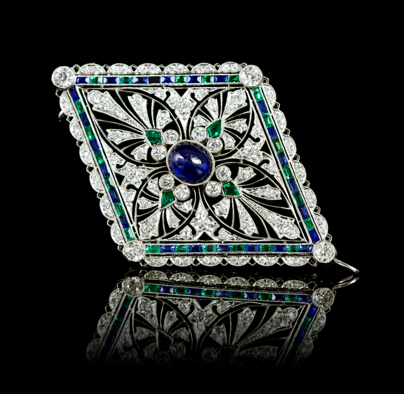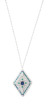A Fine Platinum, Sapphire, Diamond and Emerald Pendant/Brooch, Tiffany & Co., Circa 1912,