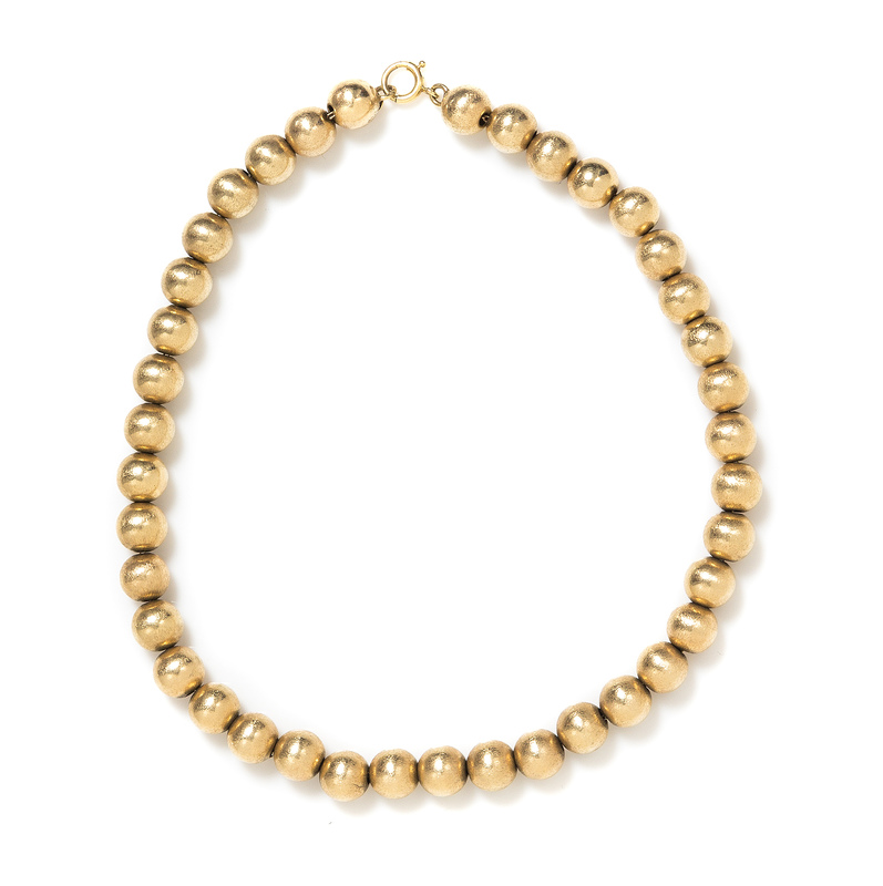 containing 39 round gold Florentine finish beads measuring approximately 10.00 mm in diameter strung on gold chain.Stamp: 4 14K.