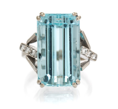 An 18 Karat White Gold, Aquamarine and Diamond Ring, H. Stern,
