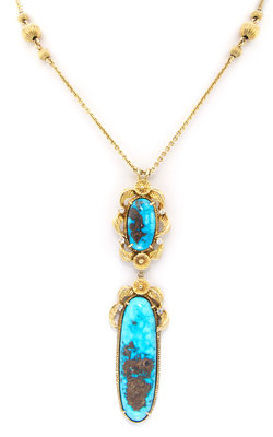 A Yellow Gold, Turquoise and Diamond Necklace,