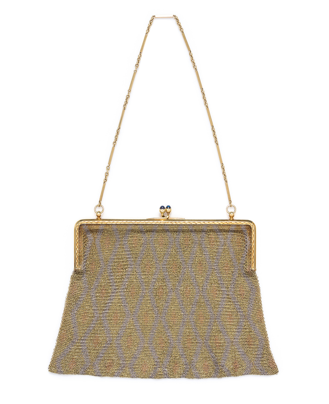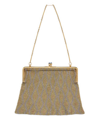 An 18 Karat Gold, Platinum and Sapphire Mesh Purse,