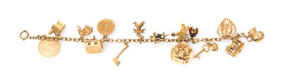 A Vintage 14 Karat Gold Charm Bracelet with 15 Attached Charms,