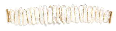containing 23 stick shape Biwa pearls and nine round brilliant cut diamonds.Stamp: 14K.