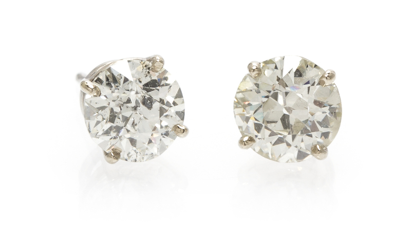 containing one old European cut diamond weighing approximately 1.16 carats and one old European cut diamond weighing approximately 0.96 carat total.Stamp: 14K.