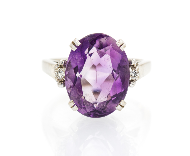A 14 Karat White Gold, Amethyst and Diamond Ring,