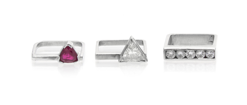 A Set of Platinum, Diamond and Ruby Stacking Rings,