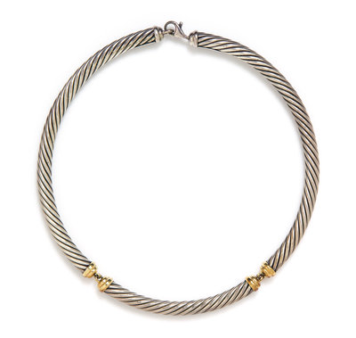 A Sterling Silver and 14 Karat Yellow Gold Cable Necklace, David Yurman.