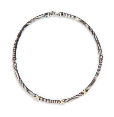 A Sterling Silver and 14 Karat Yellow Gold Cable Link Necklace, David Yurman,