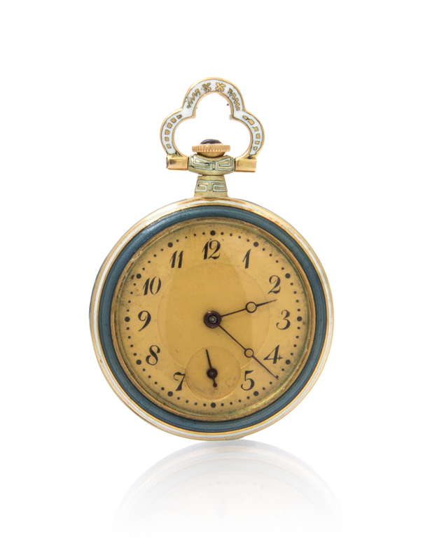 A Yellow Gold, Platinum, Diamond and Polychrome Enamel Open Face Pendant Watch,