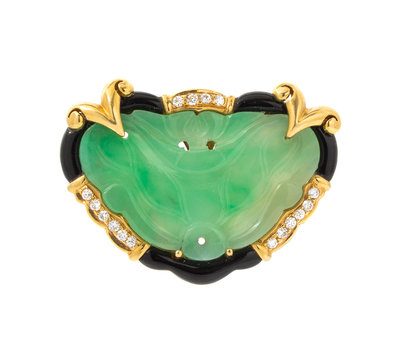 An 18 Karat Yellow Gold, Jadeite Jade, Onyx and Diamond Pendant/Enhancer,