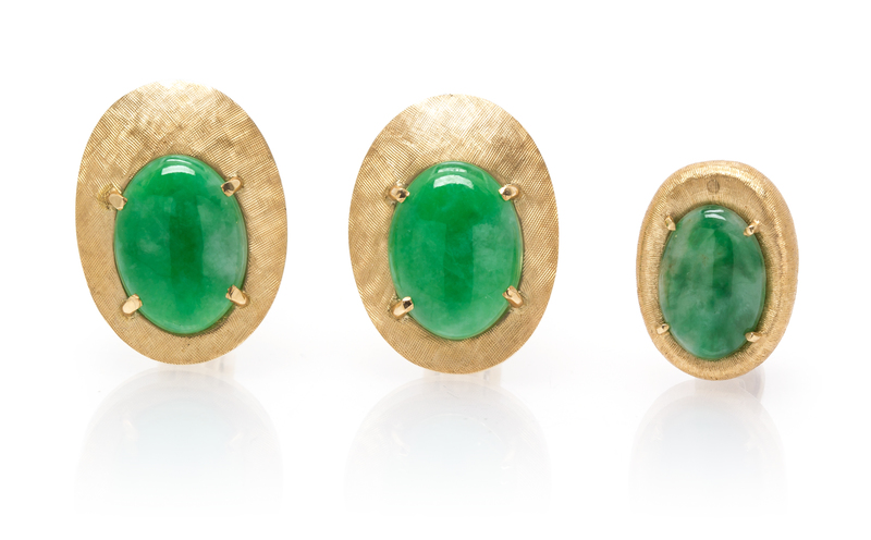 A 14 Karat Yellow Gold and Jade Dress Set,