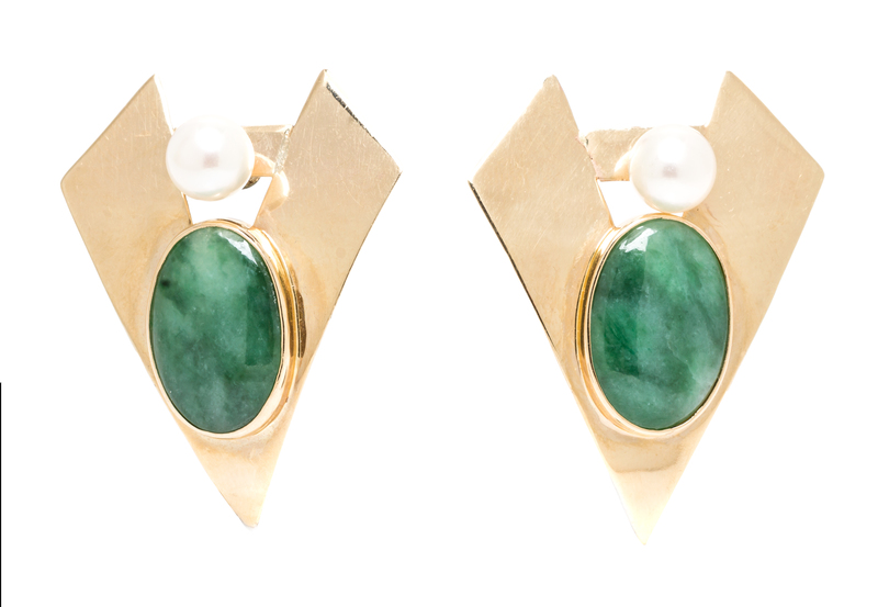 A Collection of 14 Karat Yellow Gold, Jadeite Jade and Cultured Pearl Jewelry