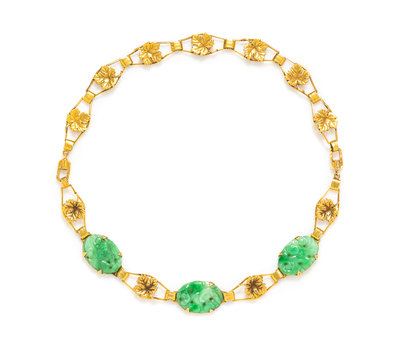 A Collection of 14 Karat Yellow Gold and Jade Link Jewelry,