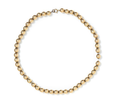 containing 50 round gold polished beads measuring approximately 7.50 mm in diameter strung on gold filled chain with a gold filled clasp.
