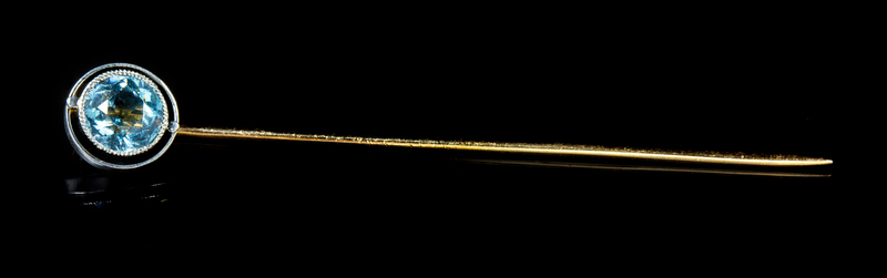 A Platinum, Yellow Gold and Aquamarine Stick Pin,