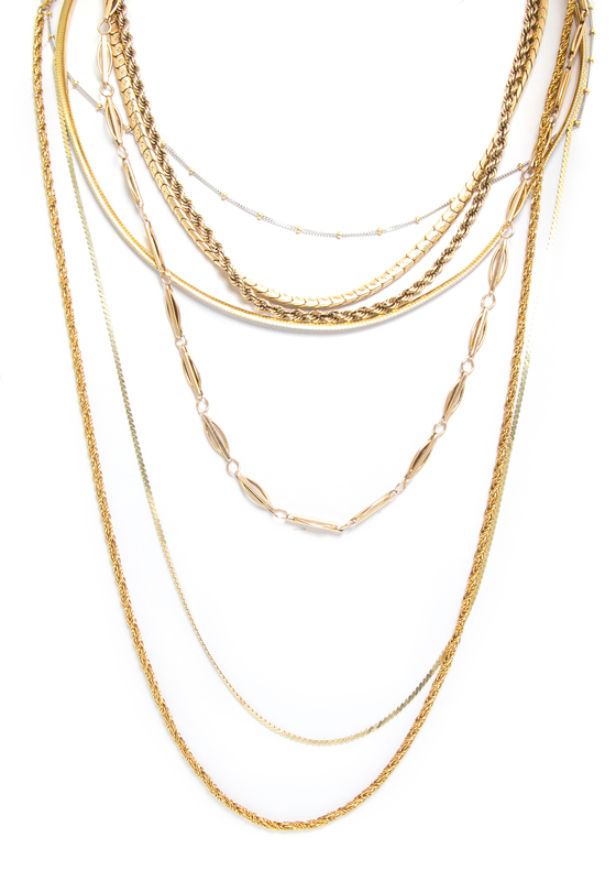 consisting of one reversible 14 karat yellow and white gold omega chain necklace, one 14 karat yellow gold flat S link necklace, one 14 karat yellow gold serpentine link chain, one 14 karat yellow gold rope chain necklace, two 14 karat yellow gold fancy link necklaces, one 14 karat yellow gold fancy link bracelet and one 18 karat yellow gold fancy link chain necklace.