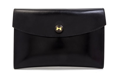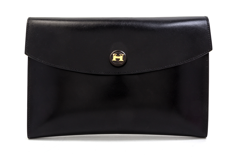 An Hermes Black Leather Rio Clutch,
