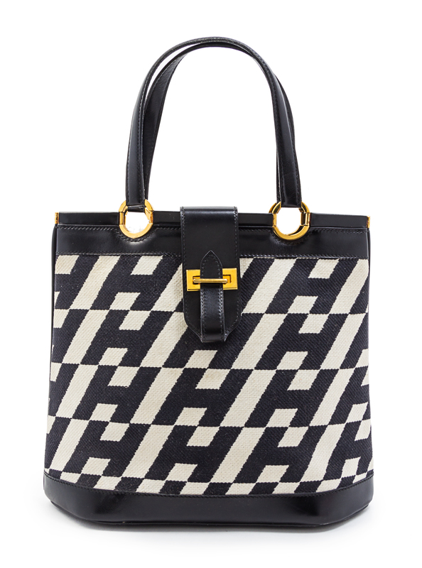 A Rare Hermes Ulysses Black Leather and Ivory Canvas Bag,