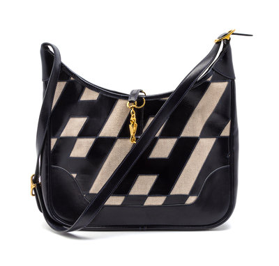 A Rare Hermes Ulysses Navy Leather and Ivory Canvas Le Trim Bag,