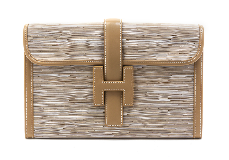 An Hermes Ivory Vibrato Leather Jige Clutch,