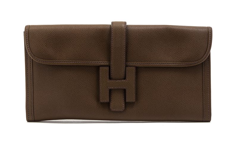 An Hermes Brown Leather Jige Clutch,