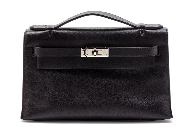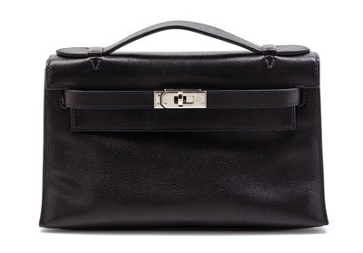 An Hermes Black Leather Kelly Clutch Pochette,