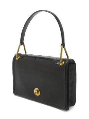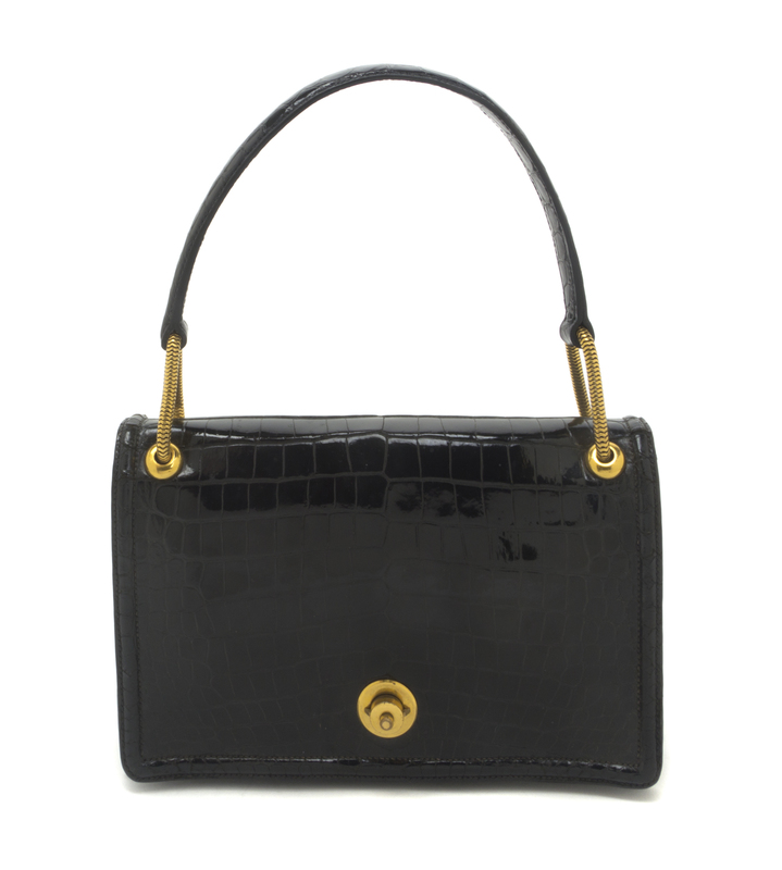 An Hermes Black Shiny Porosus Crocodile Piano Bag,