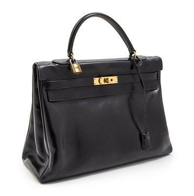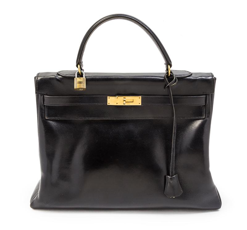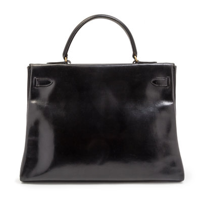 An Hermes 35cm Black Leather Kelly Bag,
