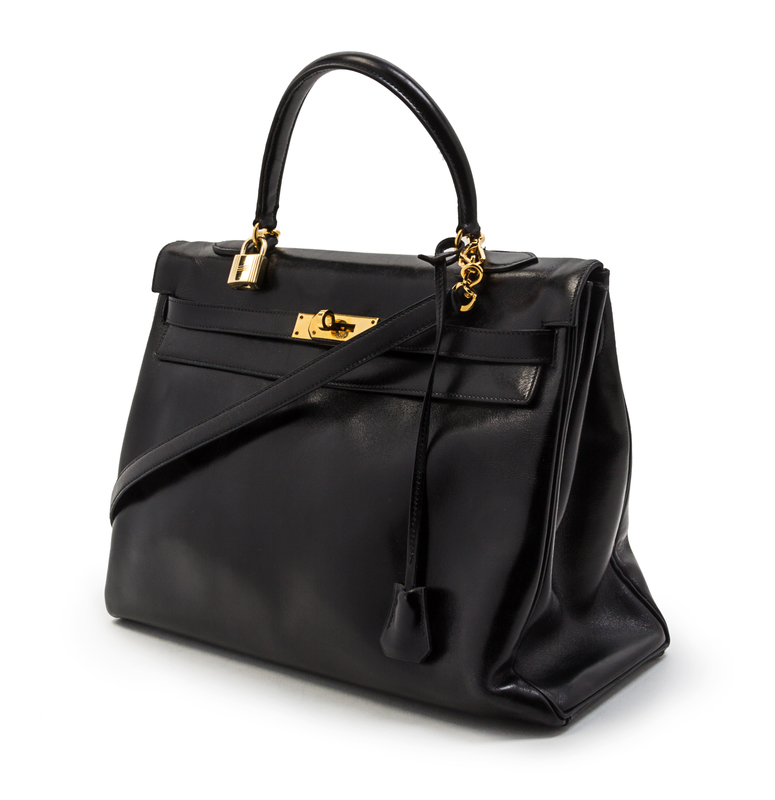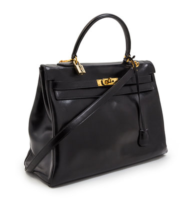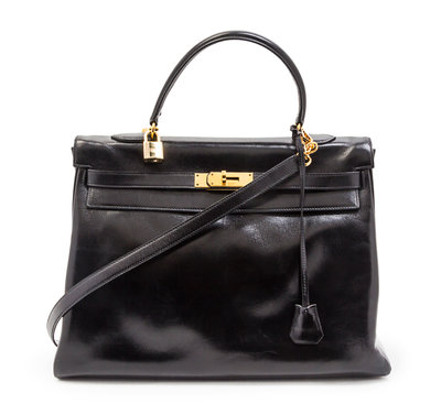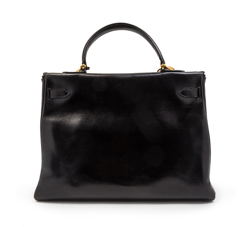 An Hermes 35cm Black Leather Kelly Bag,
