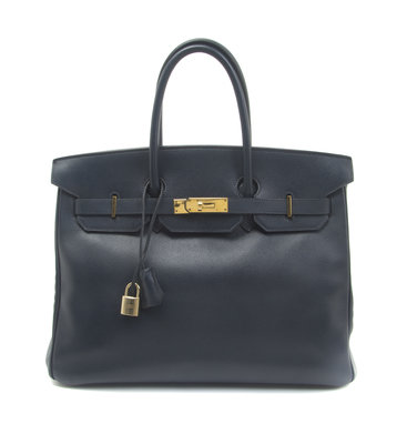An Hermes 35cm Indigo Leather Birkin Bag,