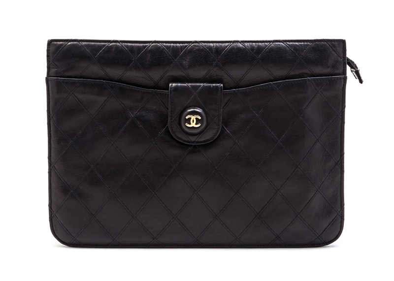 A Chanel Black Quilted Leather Clutch,