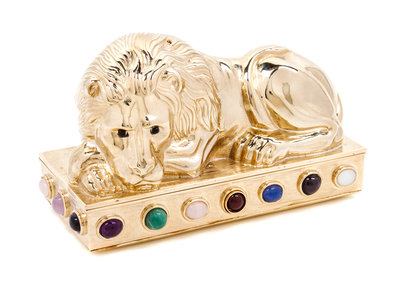 A Judith Leiber Goldtone Lion Minaudiere,