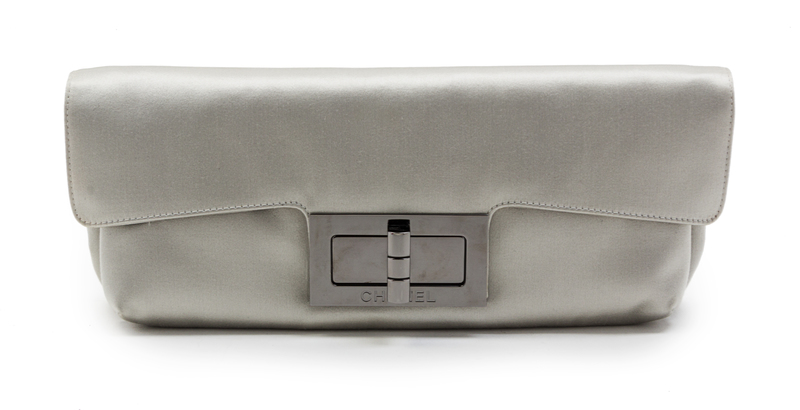 A Chanel Light Grey Satin Clutch,