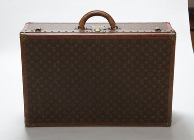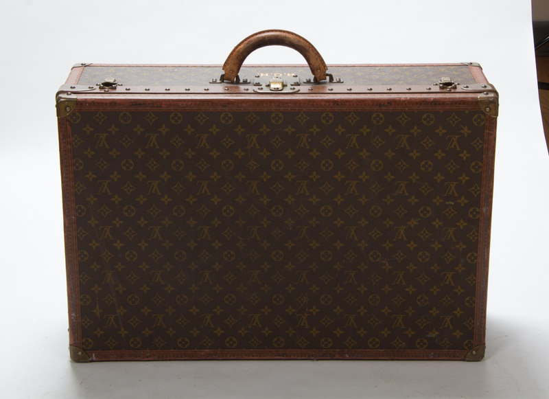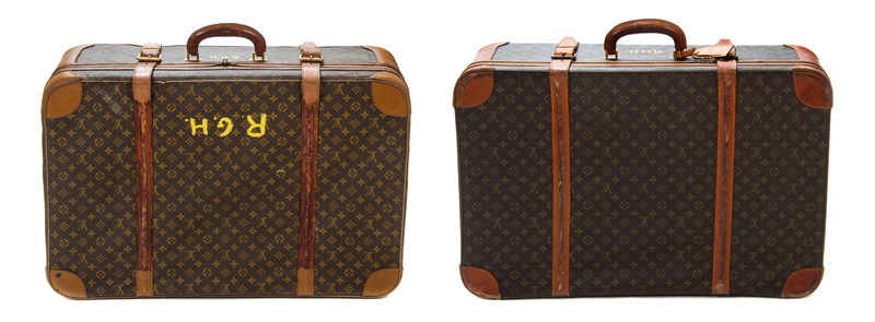 each with interior linen straps, brass stamped hardware and a stenciled monogram RGH below the handle. One suitcase with a handpainted monogram RGH to each side. Each stamped: Louis Vuitton.