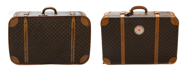 each with interior linen straps and brass stamped hardware. One suitcase with a stenciled monogram RGH below the handle. Each stamped: Louis Vuitton.